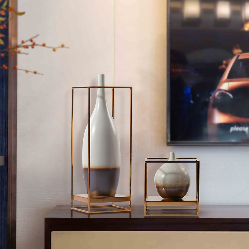 新中式瓷器摆件样板房软装客厅边柜桌面花器摆设客厅茶几艺术饰品 小号