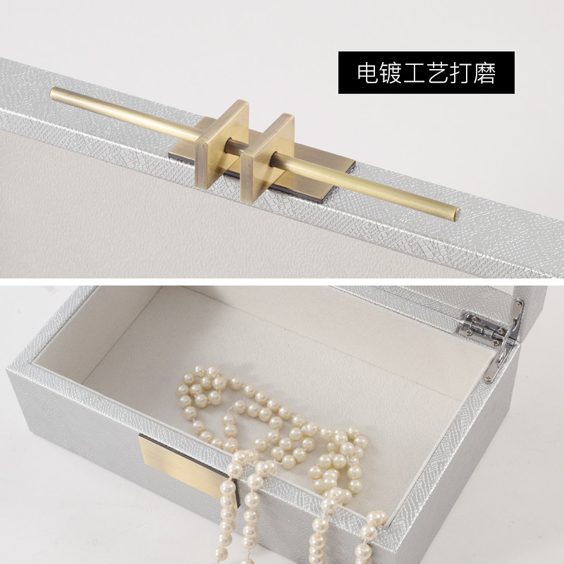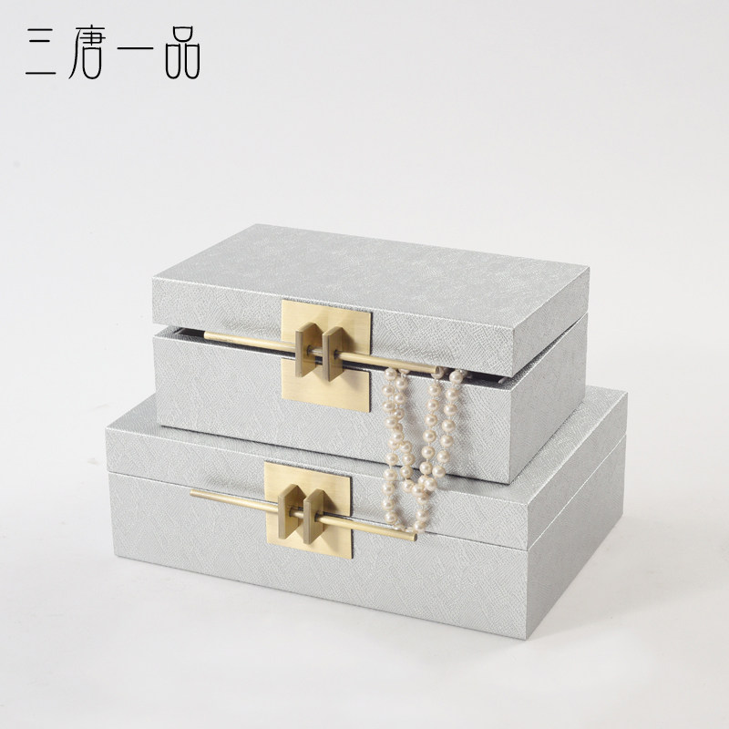 新中式简约样板房首饰收纳盒软装饰品金属扣卧室梳妆台木质收纳盒