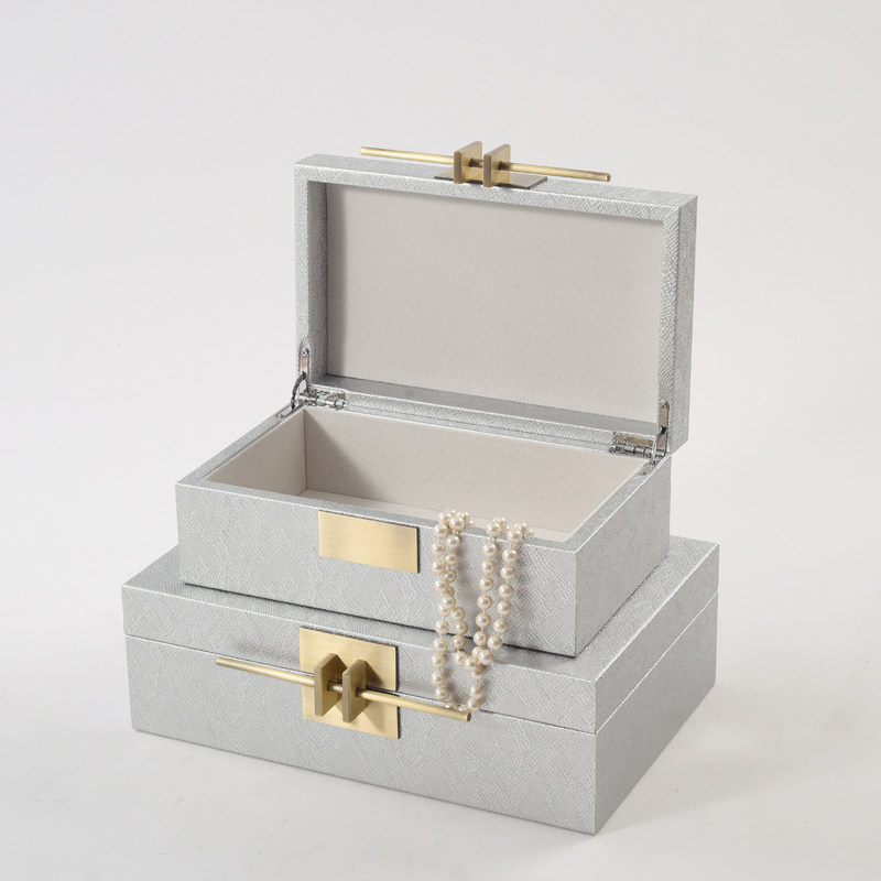 新中式简约样板房首饰收纳盒软装饰品金属扣卧室梳妆台木质收纳盒 小号