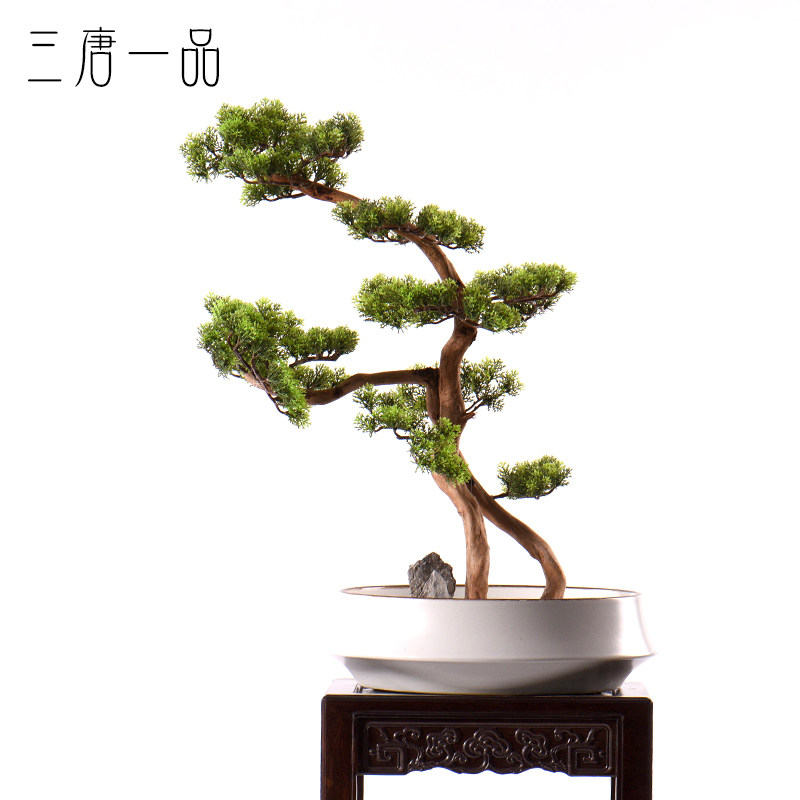 迎客松盆景 仿真崖柏盆景新中式软装茶室茶楼酒店棋牌仿真罗汉松