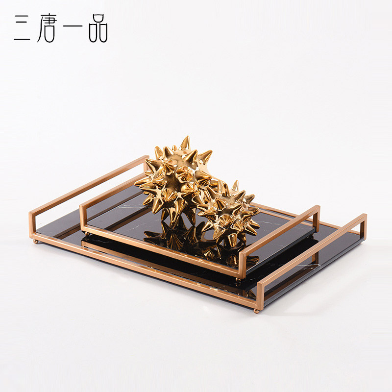 酒店摆件客厅茶几大理石托盘样板房餐厅餐桌收纳客房摆设软装摆件